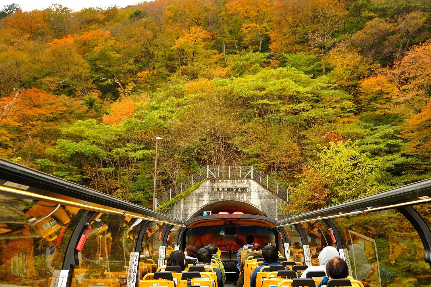 特徴1 開放感抜群のオープンエアのバスで紅葉を間近に満喫