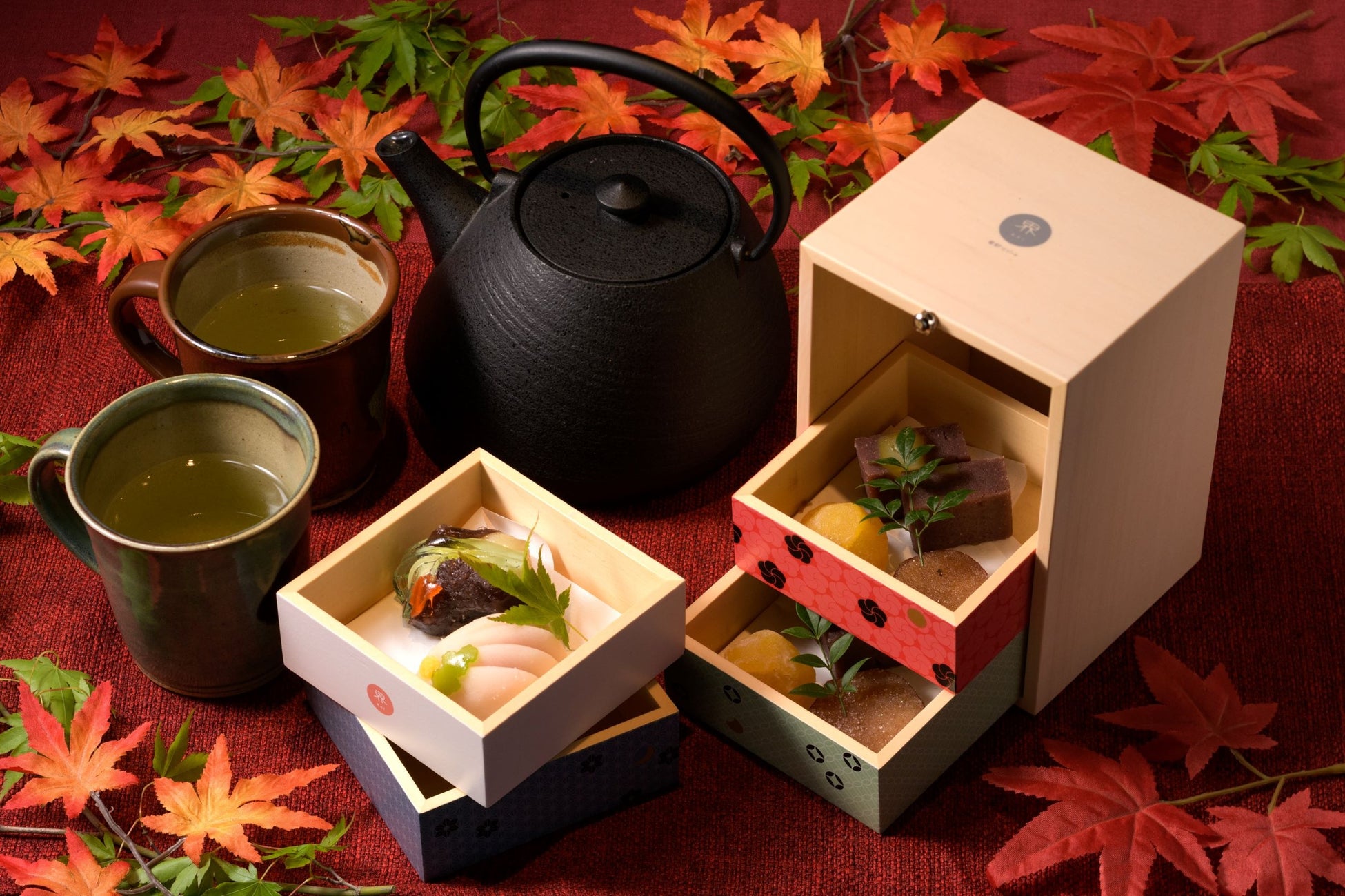~紅葉を愛でながら楽しむ、和菓子重と日本茶のセットが登場~