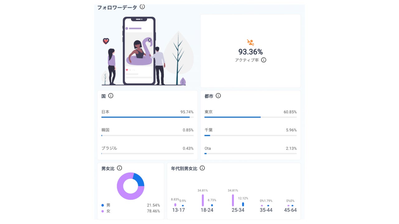 200万件以上のグローバルアカウントデータから、クリエイターのフォロワー属性データや投稿パフォーマンスを解析し、最適なターゲティングとコミュニケーションを支援します。
