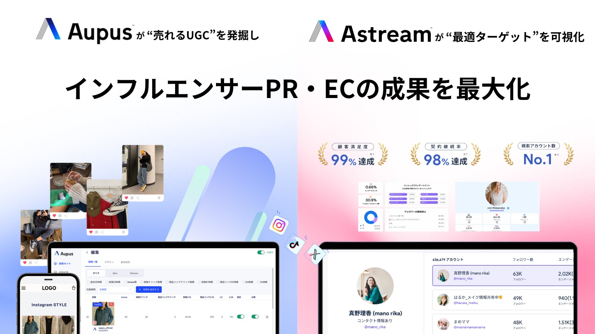 AstreamとAupusを連携させることで、インフルエンサーPRやECのデータを横断的に分析・最適化し、「どんな投稿やクリエイターが売上に寄与したか」「どんなコンテンツがブランド価値を高めたか」