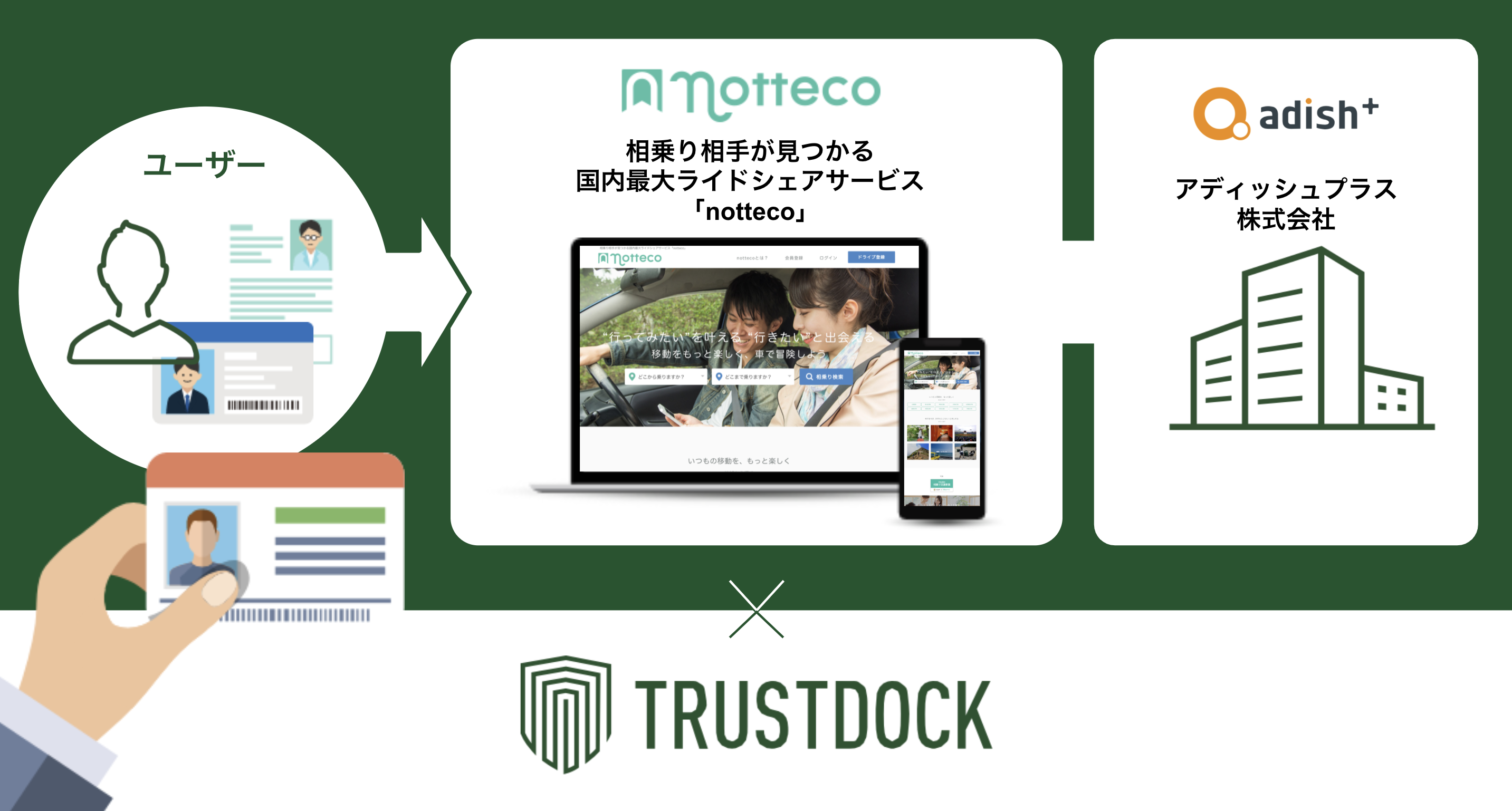 アディッシュプラスは、TRUSTDOCKが提供するeKYC本人確認サービスにより、「notteco」の本人確認業務をスムーズに行なうことが可能となります。