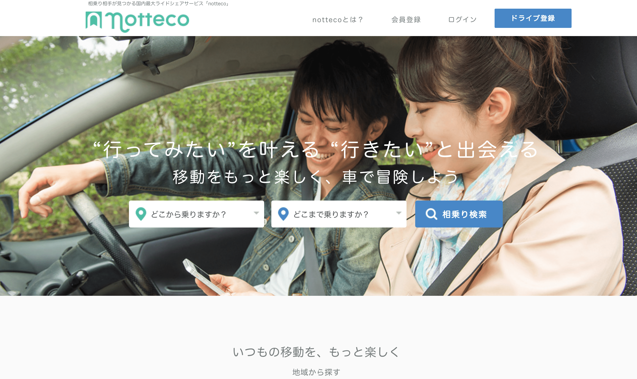 相乗り相手が見つかる国内最大ライドシェアサービス「notteco」