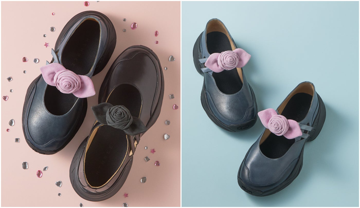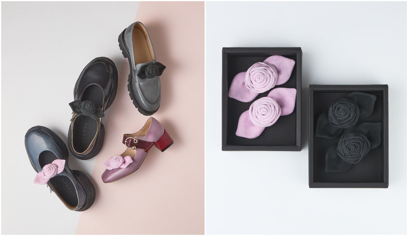 そこに組み合わせる“ローズチャーム”は、シリーズの持つ「活力」をより印象づける可愛らしい花モチーフが、LEBEシューズをより自由で楽しくアレンジできる新しいスタイルを提案しています。