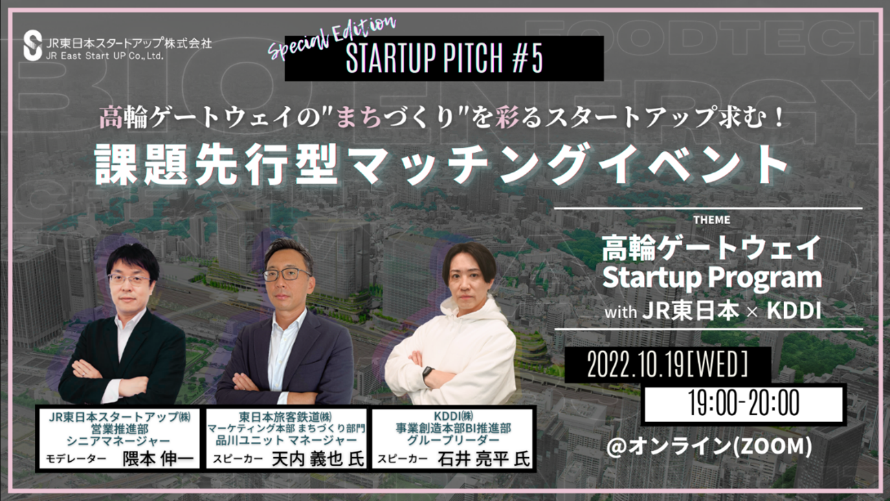 登壇テーマ:高輪ゲートウェイ Startup Program with JR東日本×KDDI 日程:2022年10月19日(水) 19:00~20:00