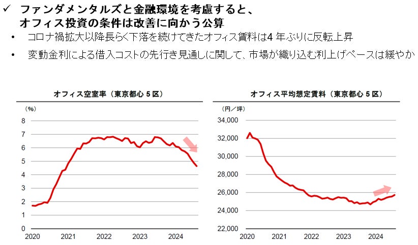 ファンダメンタルズと金融環境を考慮すると、オフィス投資の条件は改善に向かう公算