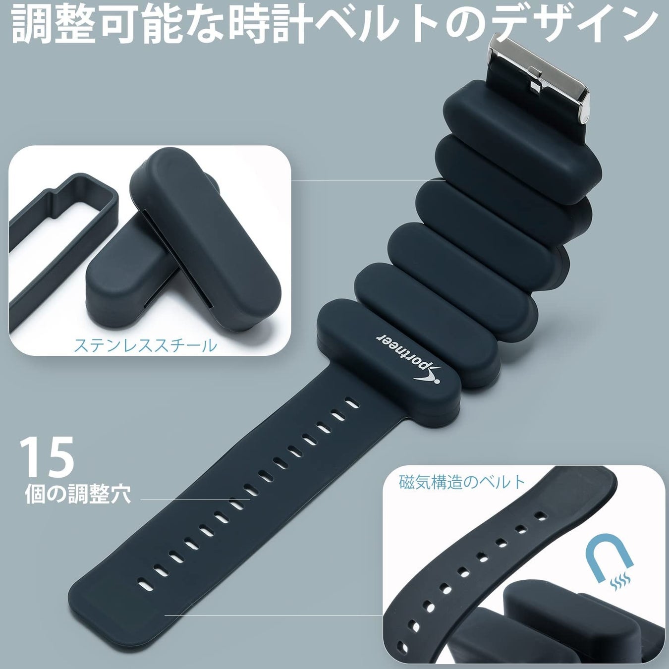 腕まわりや足首にもスッキリとしまる、腕時計のようなデザイン。ボタンタイプや詰め込み式よりも取り外しが簡単で、快適性をアップデート。ベルトの端は磁気吸引の設計でピタッと止まり、着用時にも邪魔にならず、見た目もスッキリした印象に。服装を選ばず、日常使いがしやすいウエイトアイテムです。