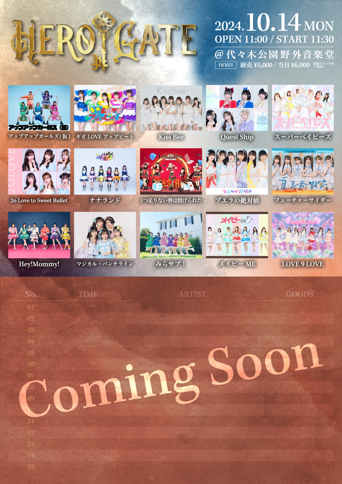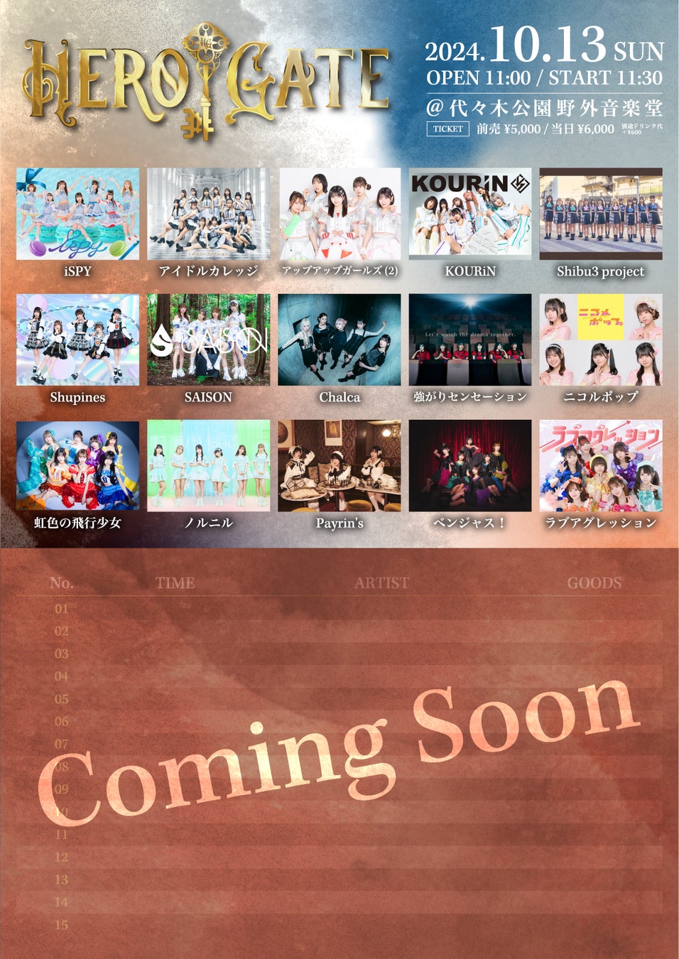 全国各地のイベントやメディア・オンラインプラットフォームと連動した新しい形の音楽イベント「HERO GATE」。初開催となる本イベントでは、大型野外フードフェス「九州観光・物産フェアin 代々木」とのスペシャルコラボレーションが決定。12日はメンズアーティスト、13日・14日はアイドルグループが多数出演します。