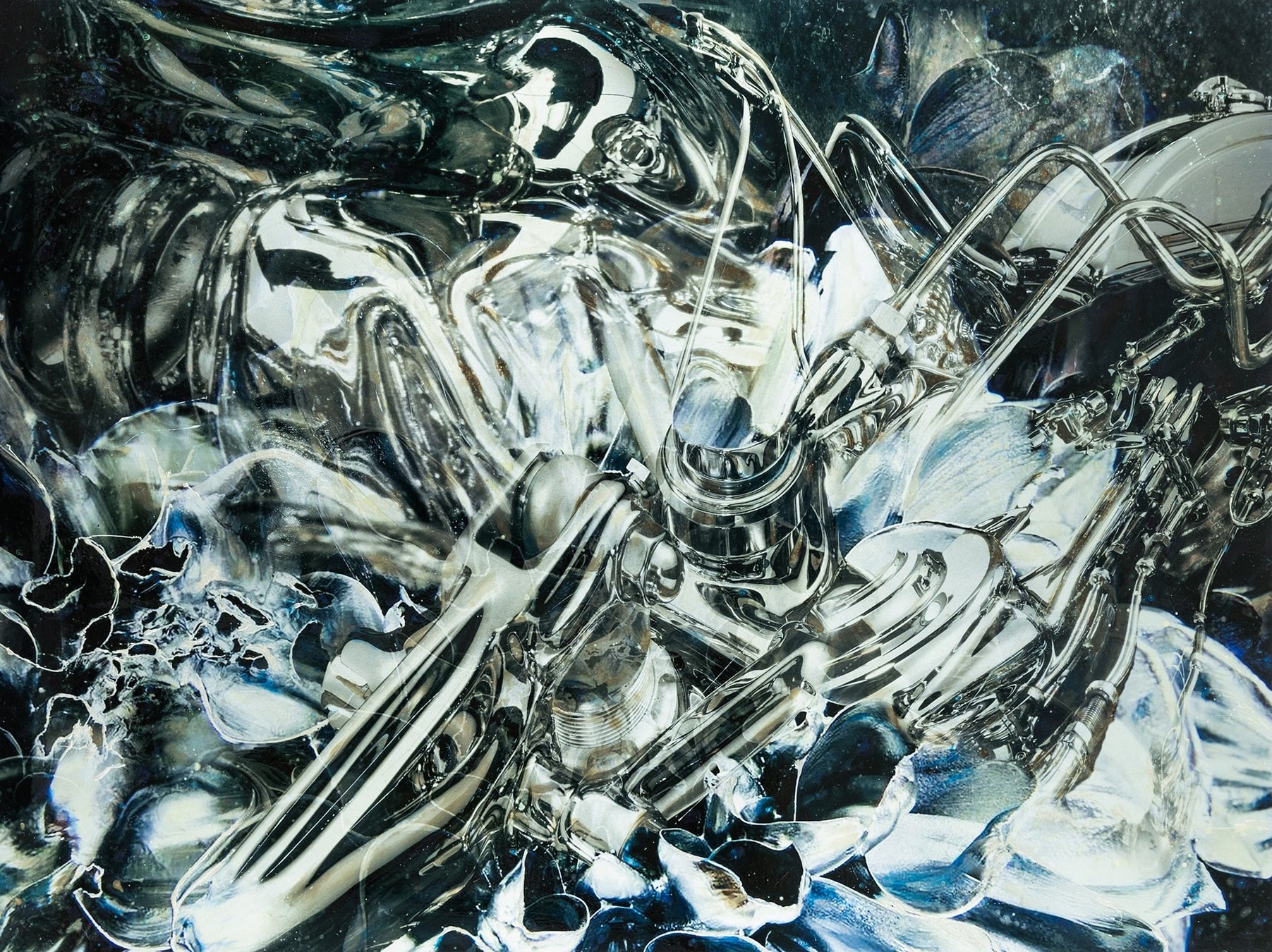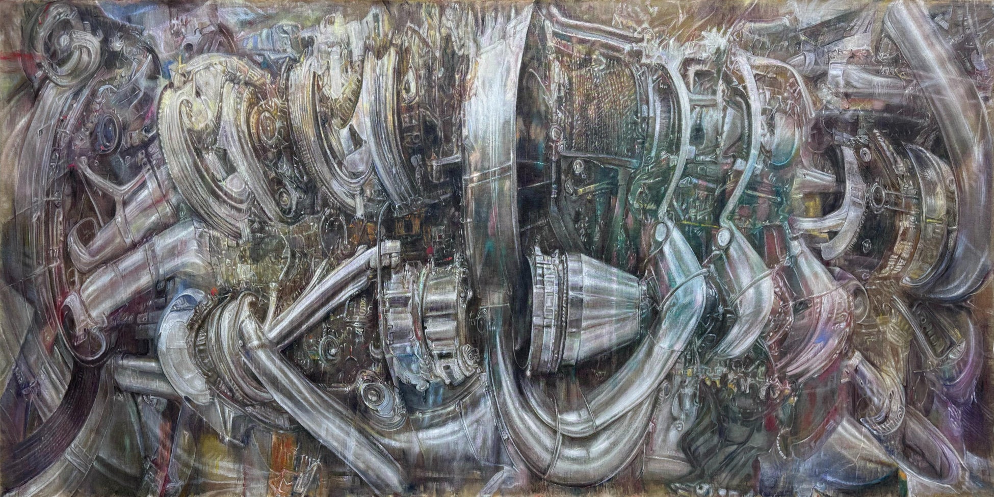 金属やプラスチックなどでできた工業製品をモチーフに絵画を構成し、有機と無機、二次元と三次元を行き来する作品表現をしている。