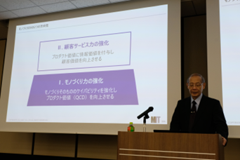 AOSデータ社、代表取締役社長 春山 洋は、冒頭、本セミナーのテーマ「サービタイゼーション」の説明を行ないました。「サービタイゼーション」とは、製品をサービスとしてお客様に提供するビジネスモデルのことです。製造業では、製品を製造・販売する、いわゆる”モノ売り”が主流でしたが、製品を活用したサービスも含んだ形で価値を提供するビジネスモデルへシフトしてきています。