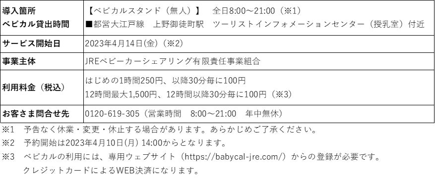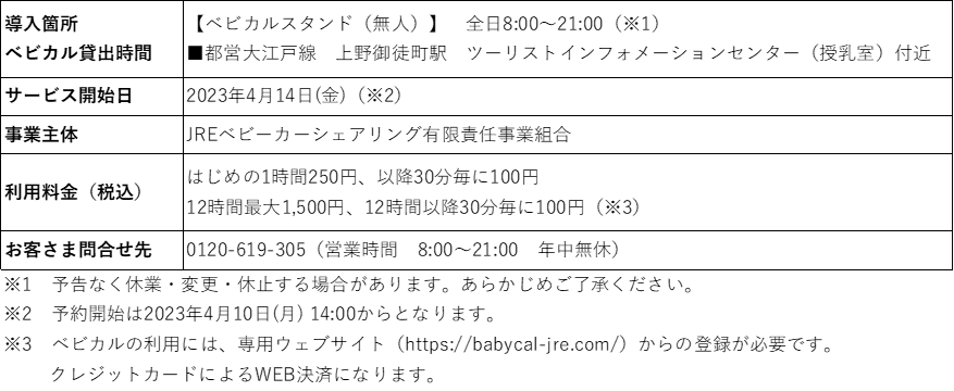 全国の地下鉄で初!ベビーカーのレンタルサービス「ベビカル」~4月14日(金)から都営大江戸線上野御徒町駅「授乳室」付近にてサービス開始~