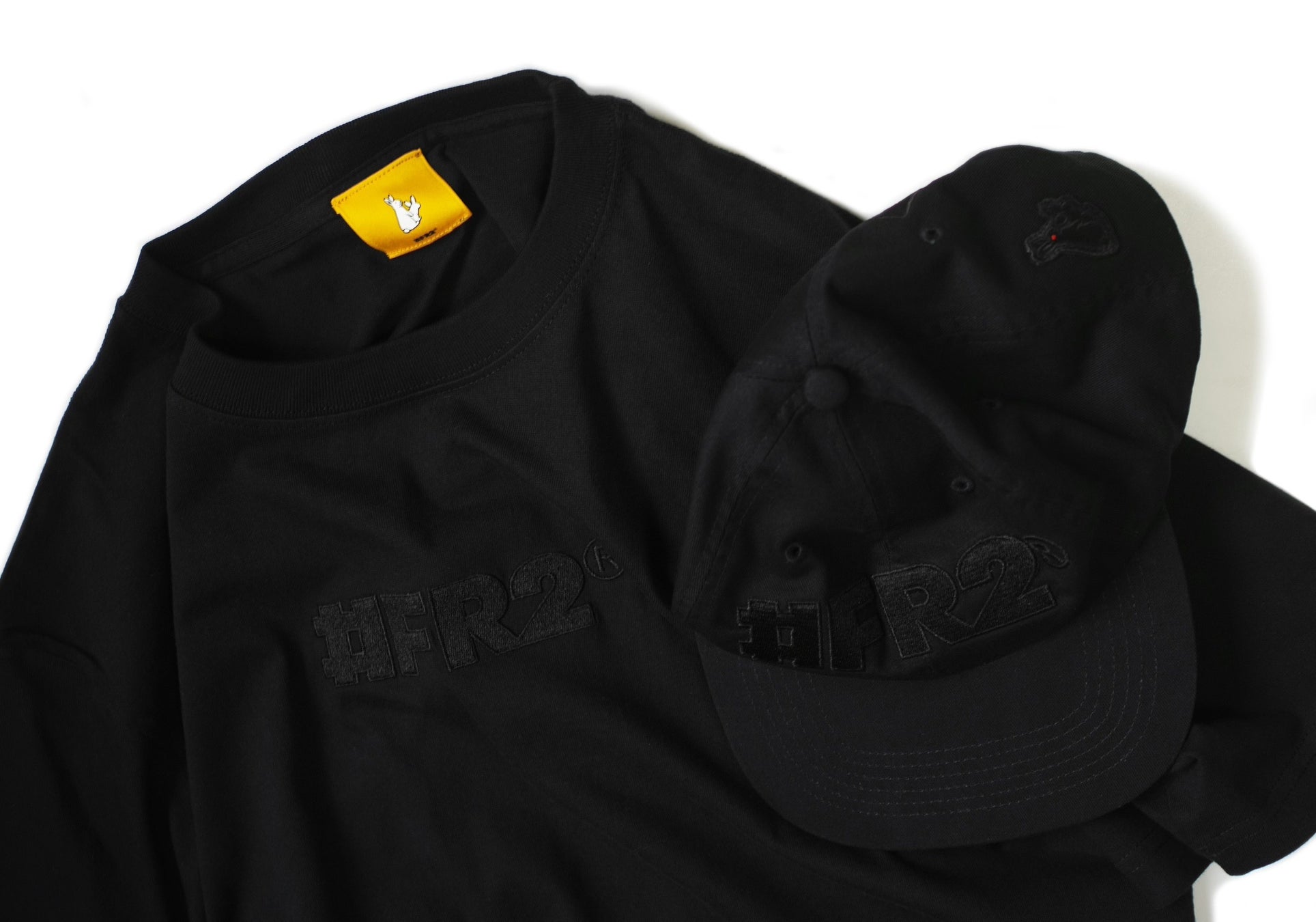 第二弾は、7.1オンスへヴィーウェイトの生地を採用したブラックTシャツと、同じくオールブラック仕様のコットンキャップの2デザインをドロップ。本テーマのロゴと、#FR2ロゴブラック刺繍に加えて、ラビッツのアイコンワッペンもオールブラックにアレンジされている。