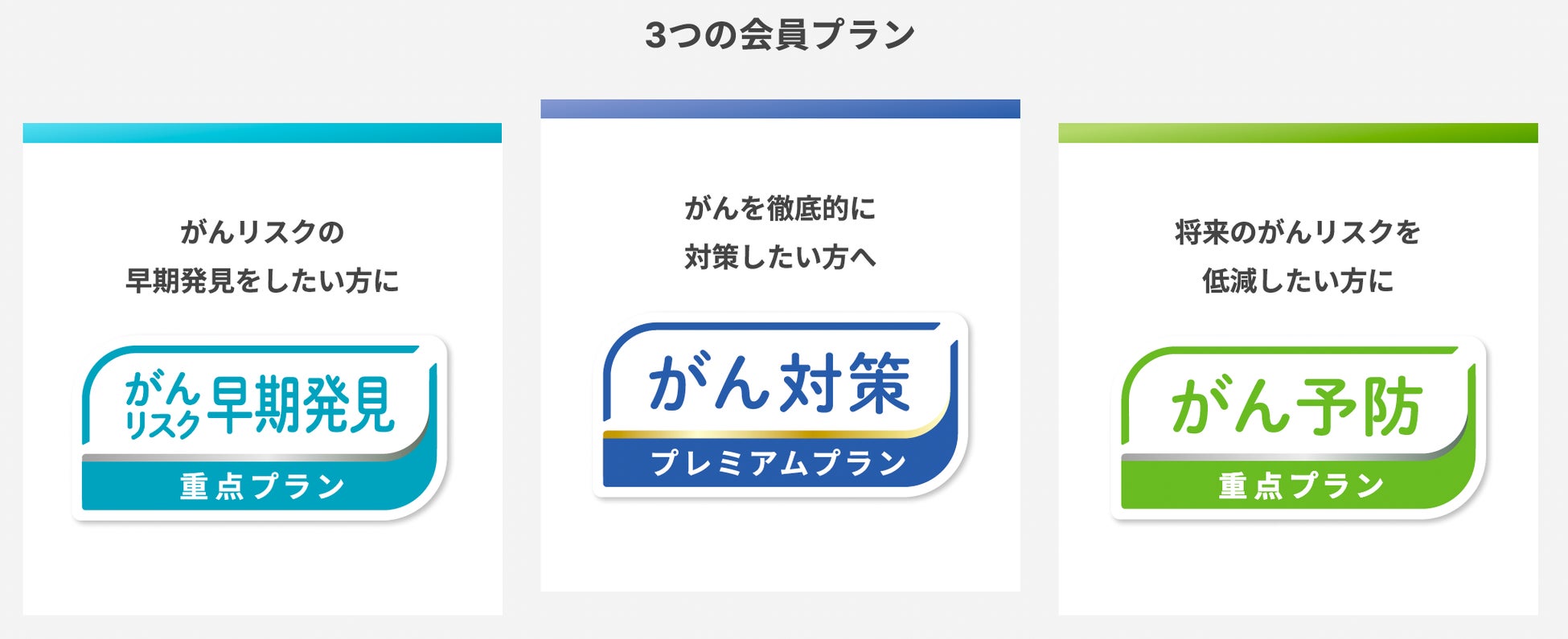 4つの製品ラインナップを組み合わせ、がんの遺伝的なリスクの把握から予防習慣のモニタリング、がんリスクの早期発見まで、あなたの課題に応じた適切な3つのプランを提供します。