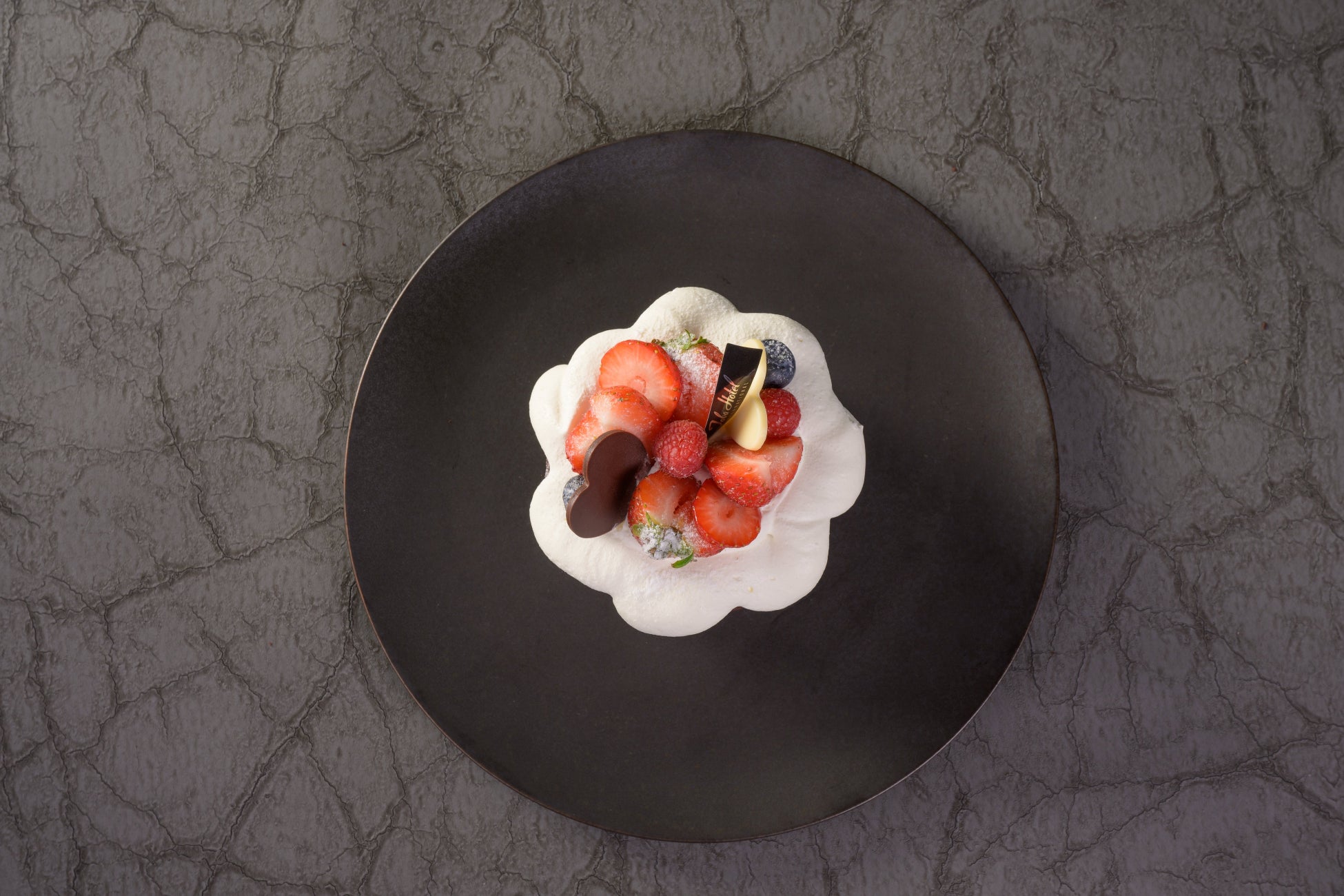 冬の定番スイーツである「ガトー・クラシック・オ・ショコラ」は、チョコレートの甘みとカカオパウダーのほろ苦さが絶妙に重なり、より濃厚な味わいを引き立てます。添えられた生クリームがカカオの風味に柔らかな甘みと奥行きを与え、イチゴ、木苺、ブルーベリーの甘酸っぱい酸味がアクセントとなり、さらに深い風味を楽しめる大人のスイーツに仕上げました。