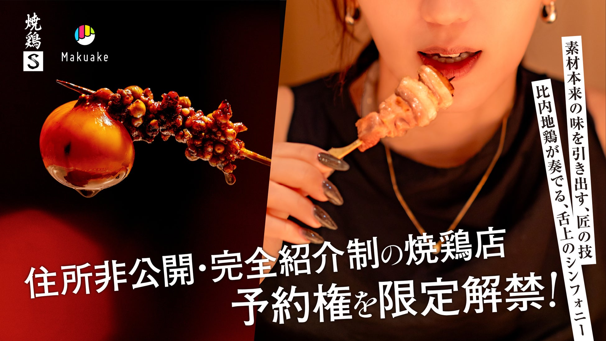 住所非公開・完全紹介制の「焼鶏S」が12月13日(金)11:00より、クラウドファンディングサイト Makuake(マクアケ)にてプロジェクトを開始いたします。今回のプロジェクトでは、通常では開放していない予約権を期間限定で解禁。さらに、本プロジェクトのためだけにご用意した特別なコースも販売いたします。