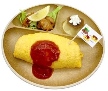 『映画デリシャスパーティ♡プリキュア 夢みる♡お子さまランチ!』の映画のテーマとなる”お子さまランチ”を思わせるような、「からあげ」「オムライス」「プリン」の3つのレシピッピをイメージしたフードメニューです。お子さまから大人まで人気のメニューが盛り付けられたわくわくするプレートになっています。