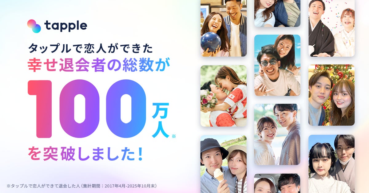 株式会社タップル(本社:東京都渋谷区、代表取締役社長:平松繁和)は運営するマッチングアプリ「タップル」において、「幸せ退会者」数が累計100万人を突破したこと※を記念し、2025年12月22日(月)より「年末年始キャンペーン」を実施することをお知らせいたします。
