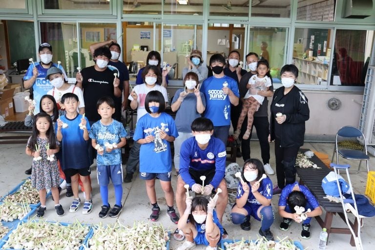 水戸ホーリーホックの農事業「GRASS ROOTS FARM」で栽培していたホーリーニンニクの皮むきから収穫までを体験。2022シーズンからは新たにサブスクリプションサービスも開始しました。さらにトップチーム所属の村田航一選手はGRF宣伝部長に就任し、取り組みの広報活動に注力しました。