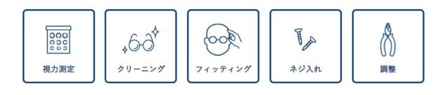 視力測定・クリーニング・フィッティング・ネジ入れ・調整の「5つの無料サービス」を行っております。
