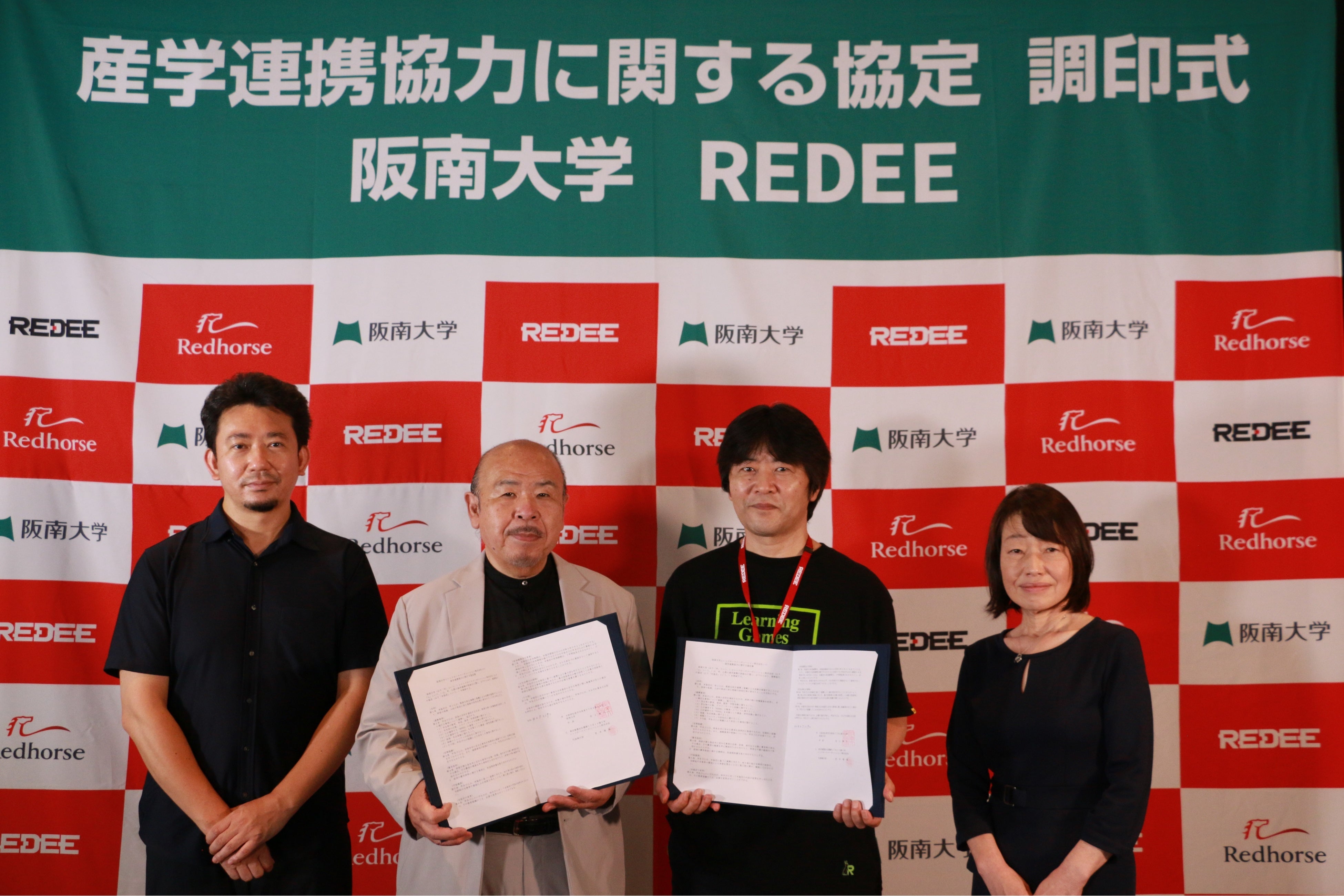 ゲームで学ぶデジタル教室「REDEE(レディー)」(所在地:大阪府吹田市、運営:レッドホースコーポレーション株式会社)は、この度、阪南大学(所在地:大阪府松原市、学長:田上博司)と互いの研究・技術分野を補完・強化することにより、地域社会への貢献、学生の教育、育成、探究・学習活動、地域・社会貢献等を目的として、産学連携・協力に関する協定を締結することとし、その調印式が7月19日(火)、REDEE内メインアリーナにて行われました。