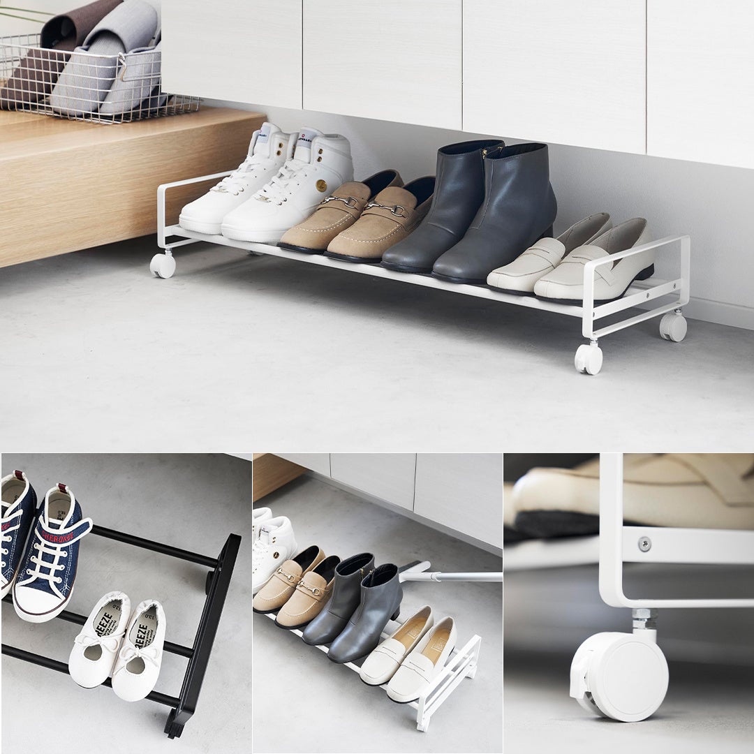 出し入れしやすいキャスター付きのシューズラックや、冷蔵庫横の隙間で使えるスライドフックなど、新商品発売しました。
