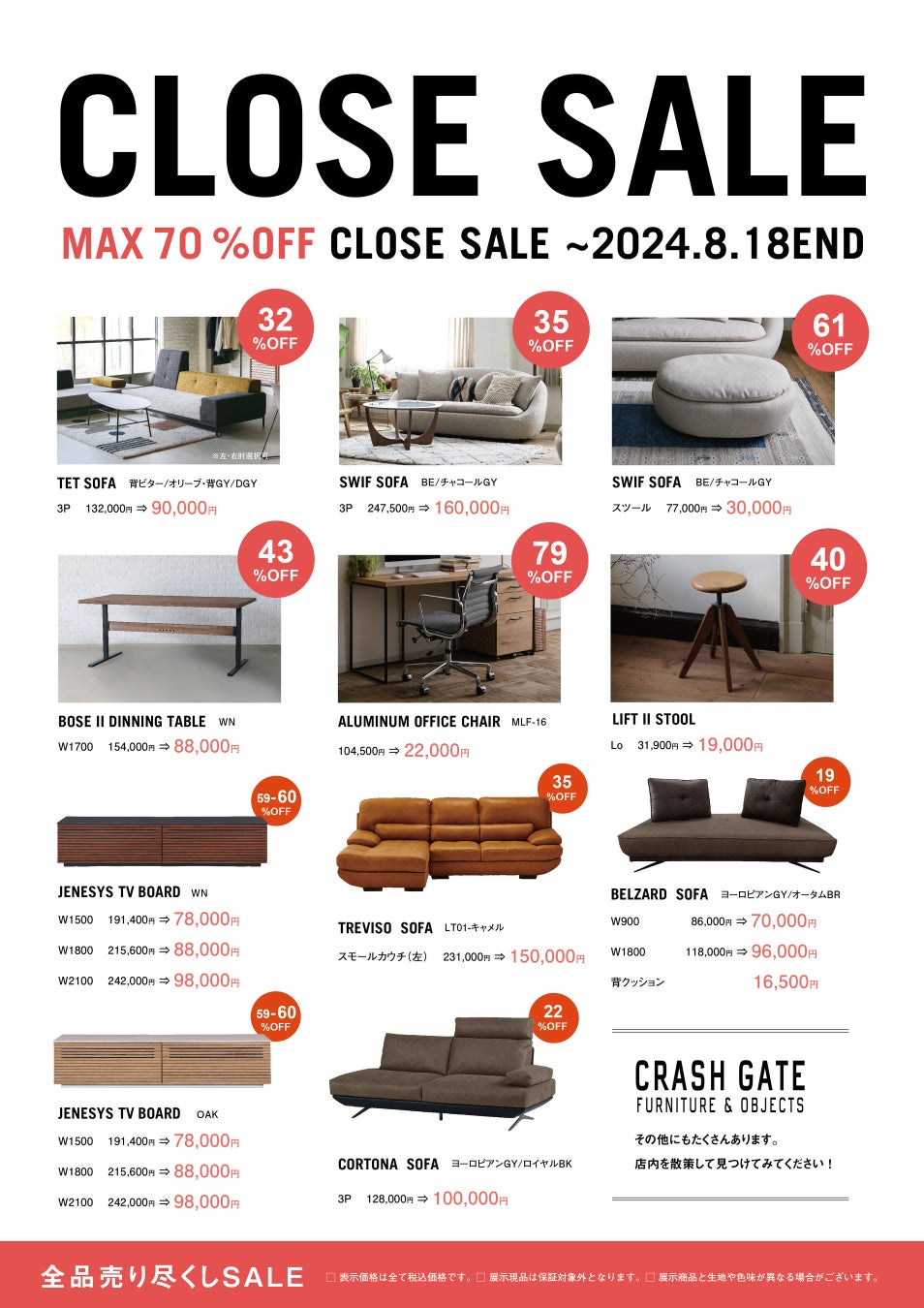 閉店にあたり、6/14(金)より在庫一掃SALEを開催致します。