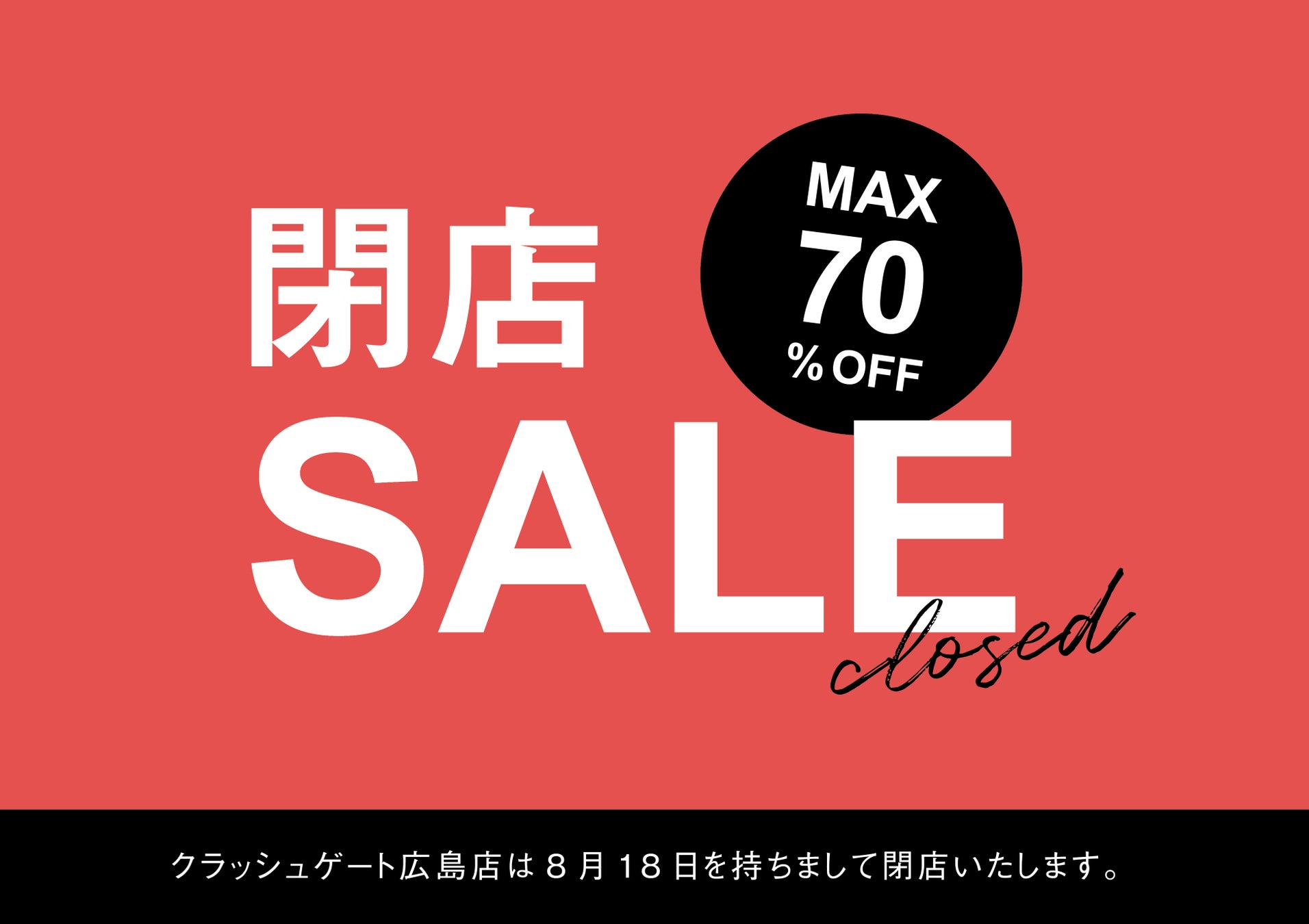 クラッシュゲート広島店、移転に伴う閉店セールを6/14(金)より開催。