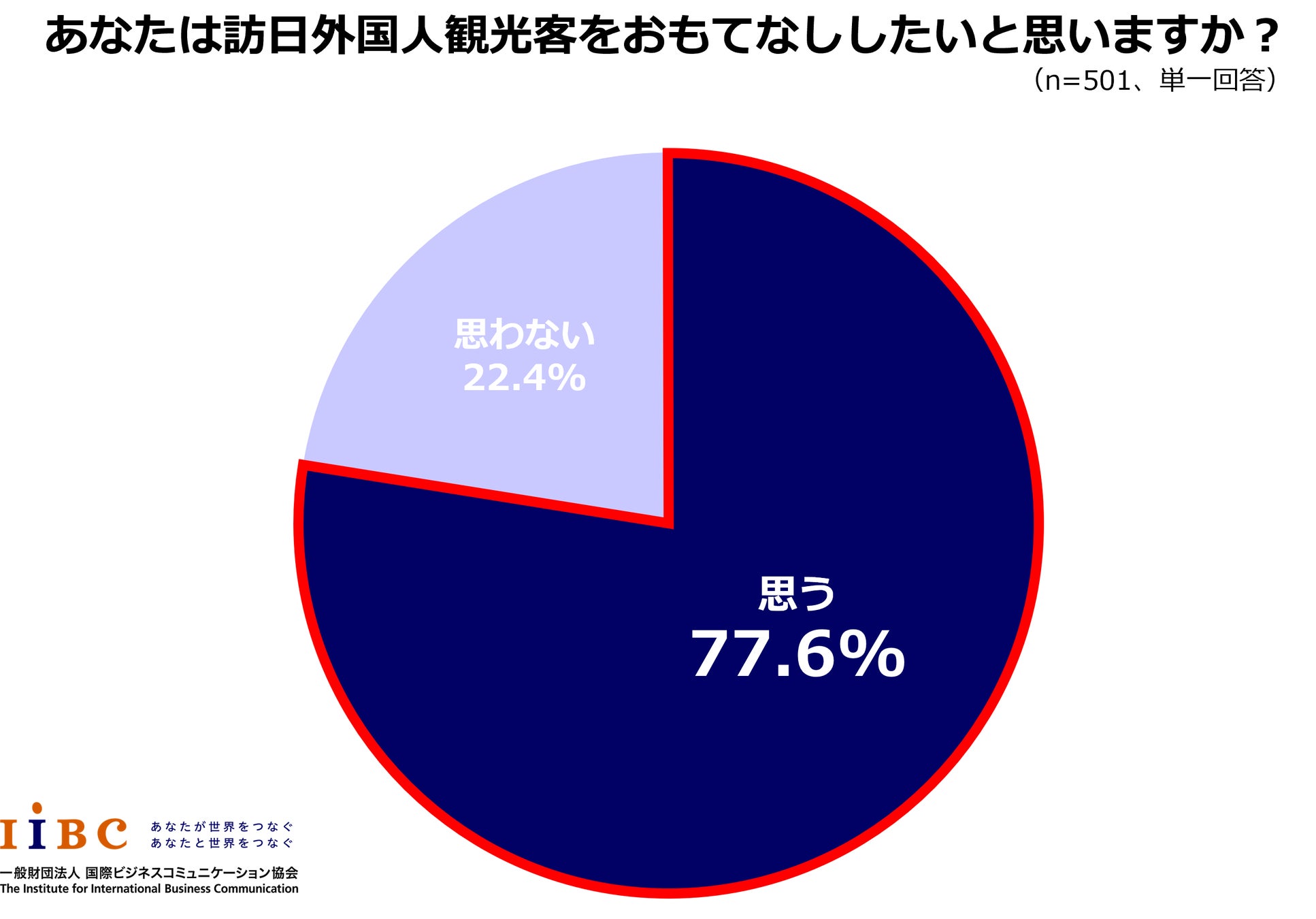 77.6%が訪日外国人観光客をおもてなししたいと思っていることが判明。理由として最も多かったのは「楽しんでもらいたいから」となり、おもてなし精神が感じられる結果に。