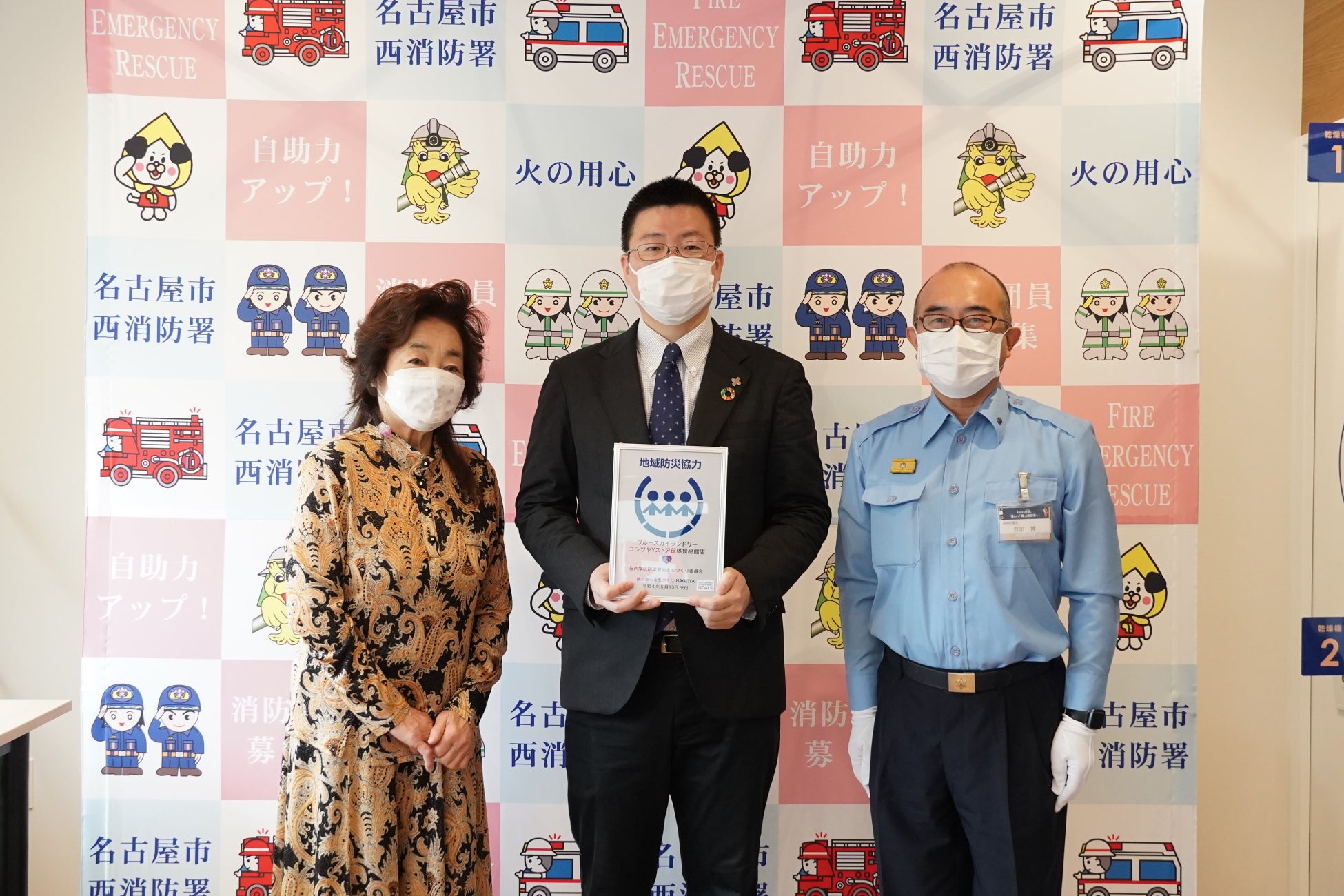 株式会社ジーアイビー(本社:名古屋市中区、代表取締役:鈴木 衛)は、ブルースカイランドリーヨシヅヤYストア笹塚食品館店での防災に対する意識と積極的な地域との連携が評価され、2023年1月19日名古屋市西区消防表彰式にて、西消防署より感謝状を授与されました。