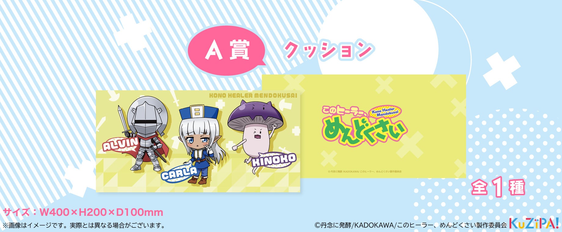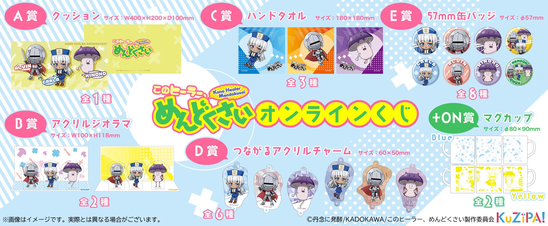 オリジナル描き起こしイラストを使用した大きめクッションやつながるアクリルチャームなど見ているだけで癒やされる、そんなTVアニメ『このヒーラー、めんどくさい』くじ販売!