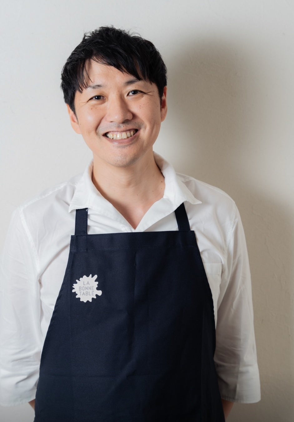 大学卒業後、調理師専門学校に入学し、フランス料理の道へ。「シェ松尾」などで腕を磨き、「L'Effervescence」へ、。2012年スーシェフに昇格。2014年「LA BONNE TABLE」のオープンとともにシェフに就任。2023年「le bistrot des bleus」料理監修。