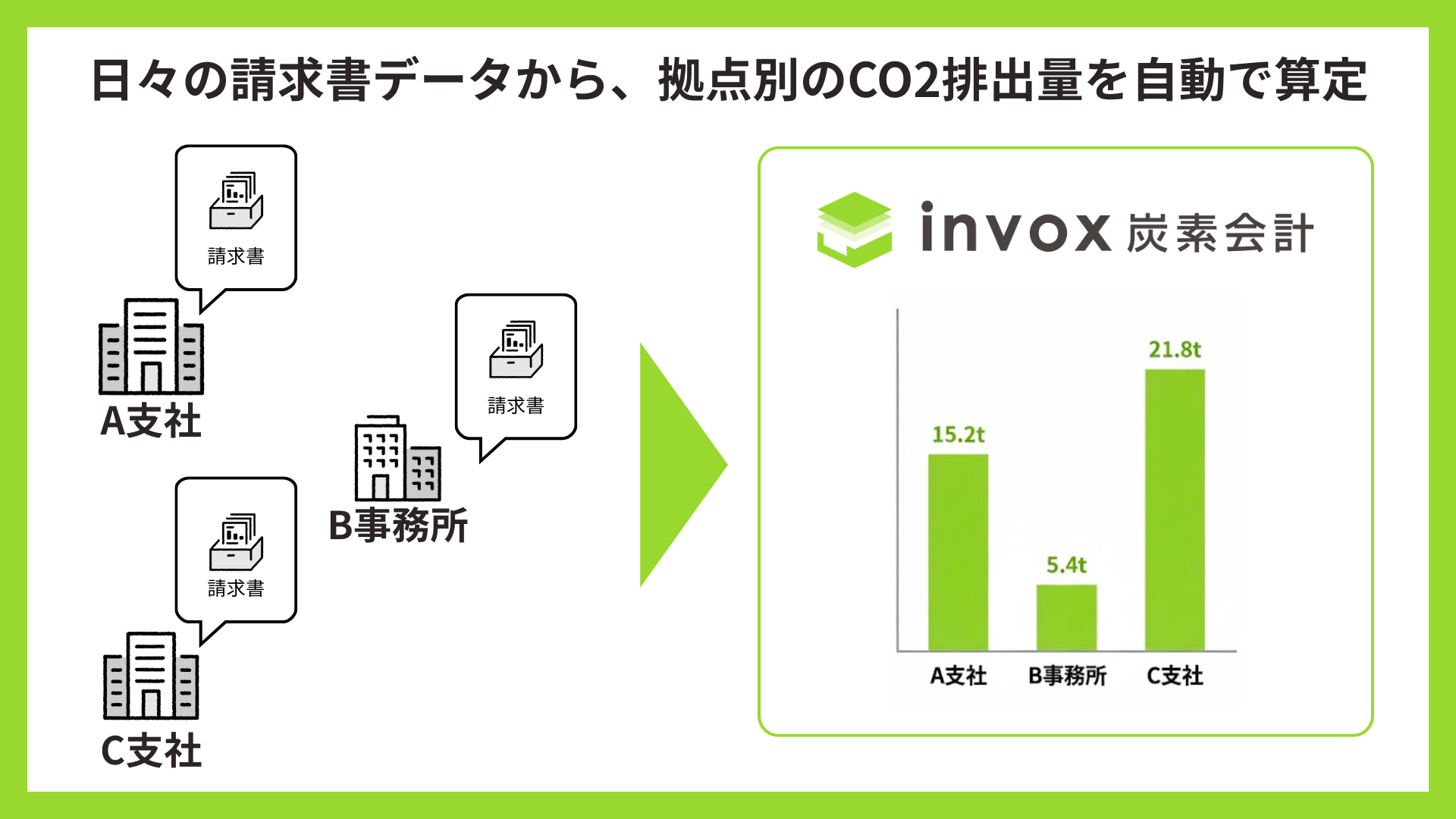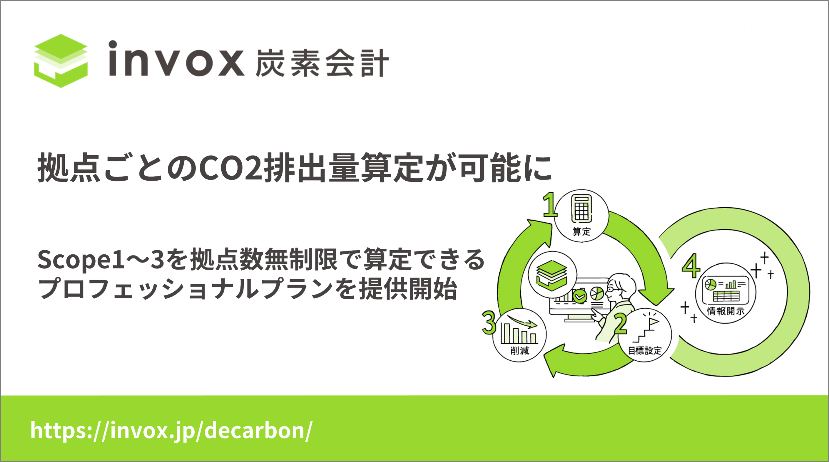 株式会社invox(本社:東京都新宿区、代表取締役:横井 朗)が開発・運営する「invox炭素会計」が、事業所・支店など拠点単位でのCO2排出量算定に対応しました。