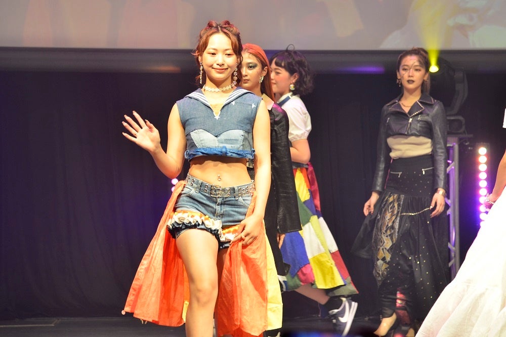 東京校のイベントは10月2日(日)に渋谷ストリームホールで開催。MCにモデルのバンダリ亜砂也を迎え、ダンス部のメンバーによるパフォーマンスからスタート。その後、2020年に活動開始を発表してからわずか5時間足らずで公式Twitterのフォロワーが1万人を突破した新世代アーティストBXWと、シンガーソングライターのさとうもかのライブを交えながら、SDGsの12番にも提唱されている「リメイク」に焦点を当てた古着のスタイリングショーや、ヘアメイク・ファッション・モデルをトータルでプロデュースするショーなど、メンバーが授業で身につけたノウハウとスキルを生かしたステージを発表しました。中でも、ファッションブランドと連携して行った「VENUS BRAND PR SHOW」では、10代に人気の3つのファッションブランドを使い、10代にバズるコーディネートを提案。ブランドの選出から各社へのプレゼンテーション、衣装のリース、スタイリング、そしてモデルとしてのステージ出演まで全てメンバー自身が行うという、究極のトータルプロデュースを発表しました。