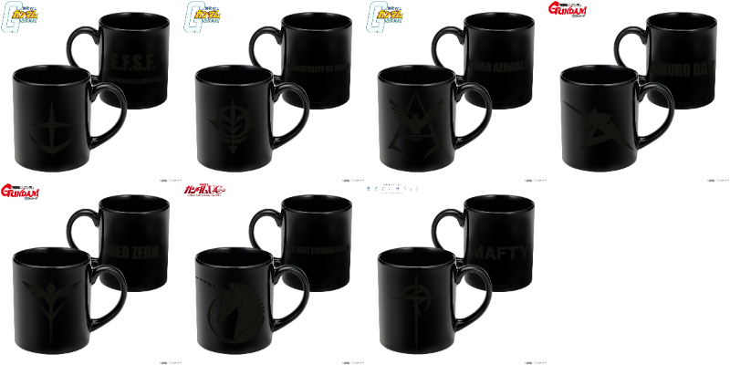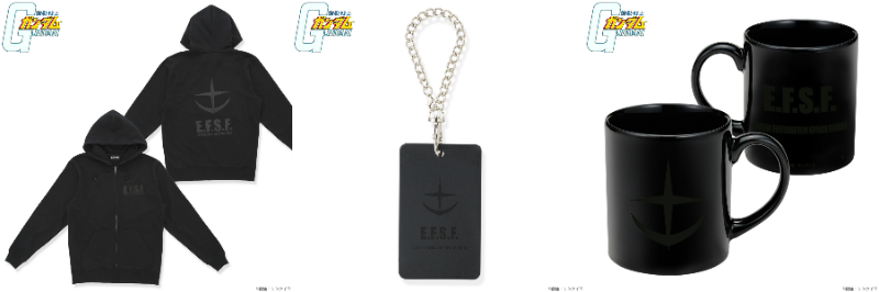 「ジップパーカー」、「マグカップ」、「パスケース」の全3アイテムそれぞれ、『機動戦士ガンダム』より「地球連邦軍」、「ジオン公国軍」、「シャア」の3種、『機動戦士ガンダム 逆襲のシャア』より「アムロ」、「ネオ・ジオン」の2種、『機動戦士ガンダムUC』より「ビスト財団」の1種、『機動戦士ガンダム 閃光のハサウェイ』より「マフティー」の1種、全7種がラインアップします。