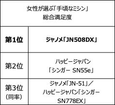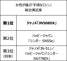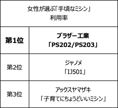 手芸が得意な人こそ持っている!女性が選ぶ手頃なミシン利用率1位は「ブラザー PS202/PS203」、総合満足度1位は「ジャノメ JN508DX」