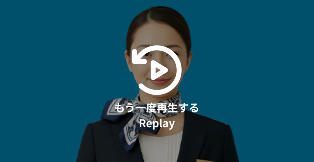 案内終了後も「Replay」ボタンから同じ内容を再生できます。聞き取りづらかった場合や操作に迷った場合でも、繰り返し確認できるため、セルフチェックインでも安心して手続きを進められます。
