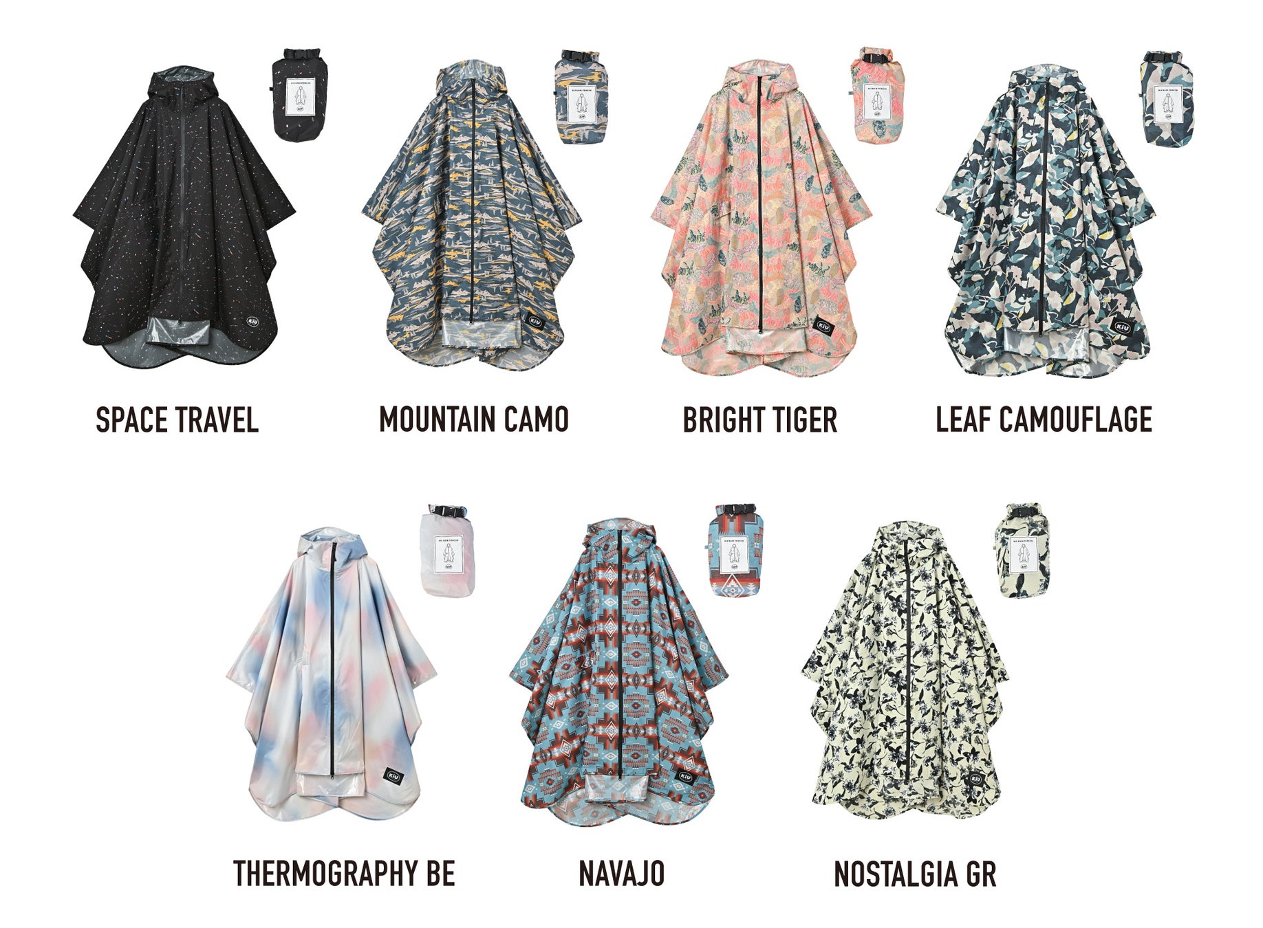 テキスタイルデザインを用いて、ポンチョ・傘・ボディバッグ・リュック・アウトドアグッズなどを広く展開し、お手頃な価格で「どんな天気でも楽しめる」デザイン性や、「痒いところに手が届く」高機能なスペックが特徴。