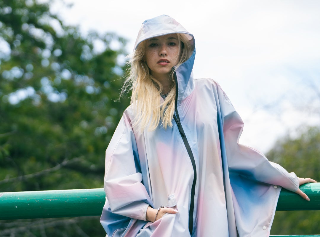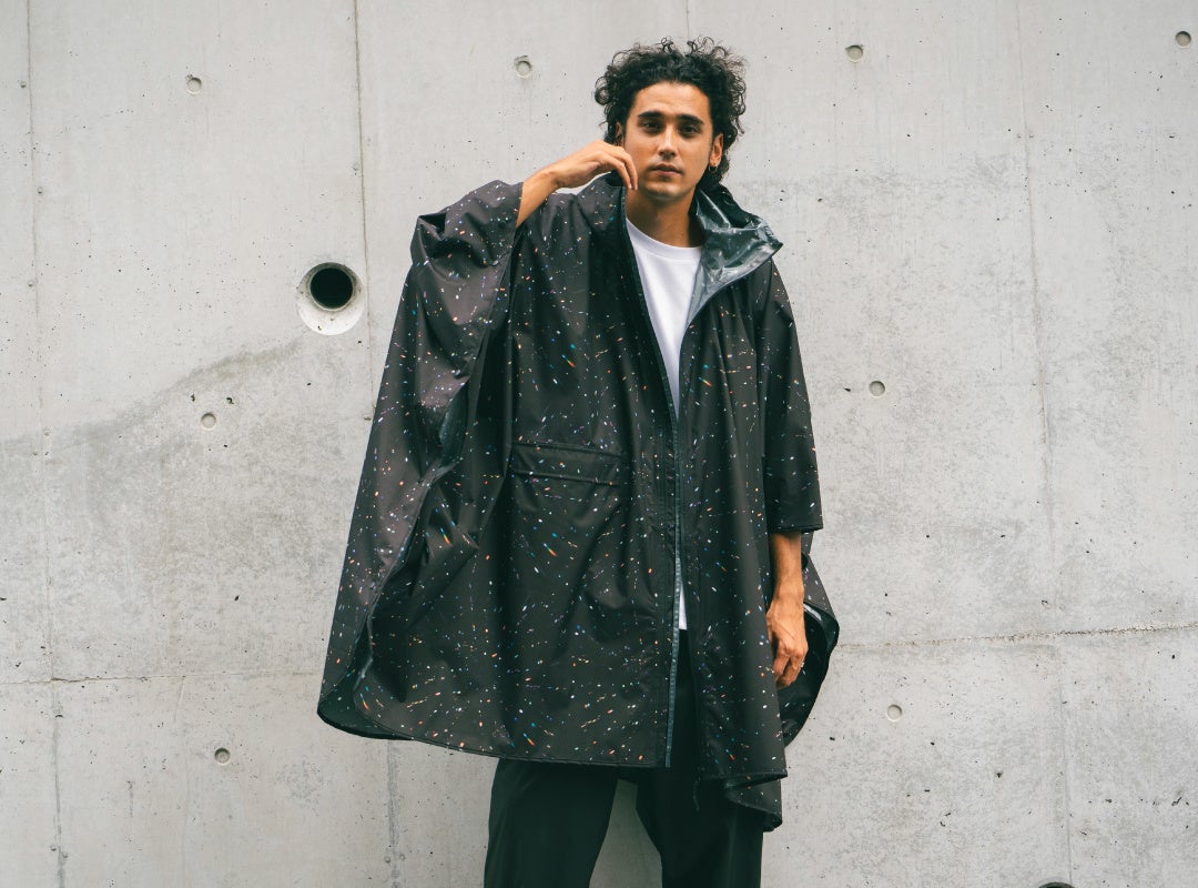 ブランドの代名詞ともいえる「レインポンチョ」は、お手軽な価格ながら高い防水性能が特徴。