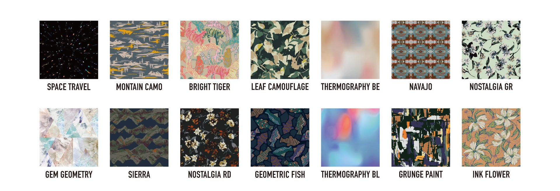 新パターン:スペーストラベル/マウンテンカモ/ブライトタイガー/リーフカモフラ/