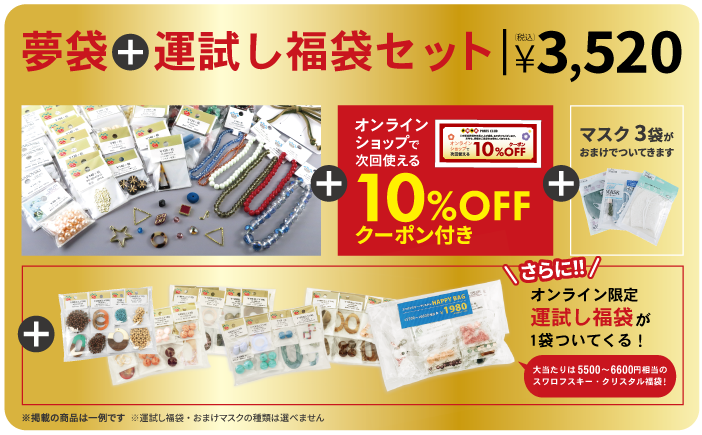 ビーズ&アクセサリーパーツなどが詰まった「2022お正月夢袋」「福袋」をPARTS CLUB onlineで12/14(火)夕刻~16(木)16時の3日間限定で予約受付販売。
