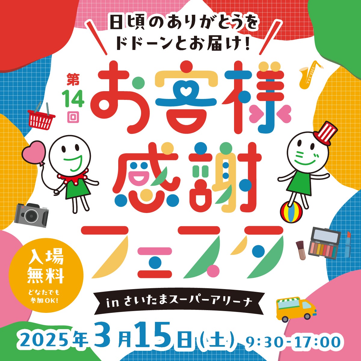 医薬品の研究開発から製造・販売までを行う複合型医薬品企業の株式会社富士薬品(本社:埼玉県さいたま市 代表取締役社長:高柳 昌幸、以下「富士薬品」)は、2025年3月15日(土)さいたまスーパーアリーナにおいて、入場無料でどなたでもご参加いただけるお買い物イベント「富士薬品グループ 第14回お客様感謝フェスタ inさいたまスーパーアリーナ(以下、お客様感謝フェスタ)」(URL:https://drugstore.seims.co.jp/lp/202503-Festa/)を開催します。