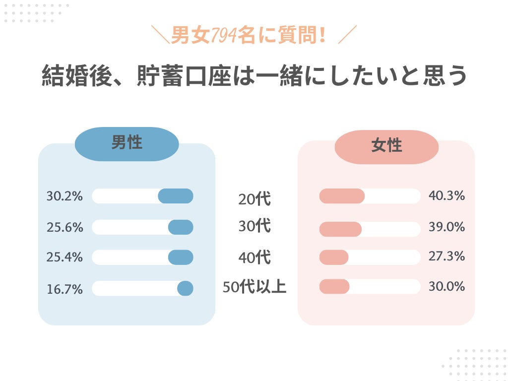 「貯蓄口座を一緒にしたい」最多は20代女性! 世代が上がるほど“別々派”が増加