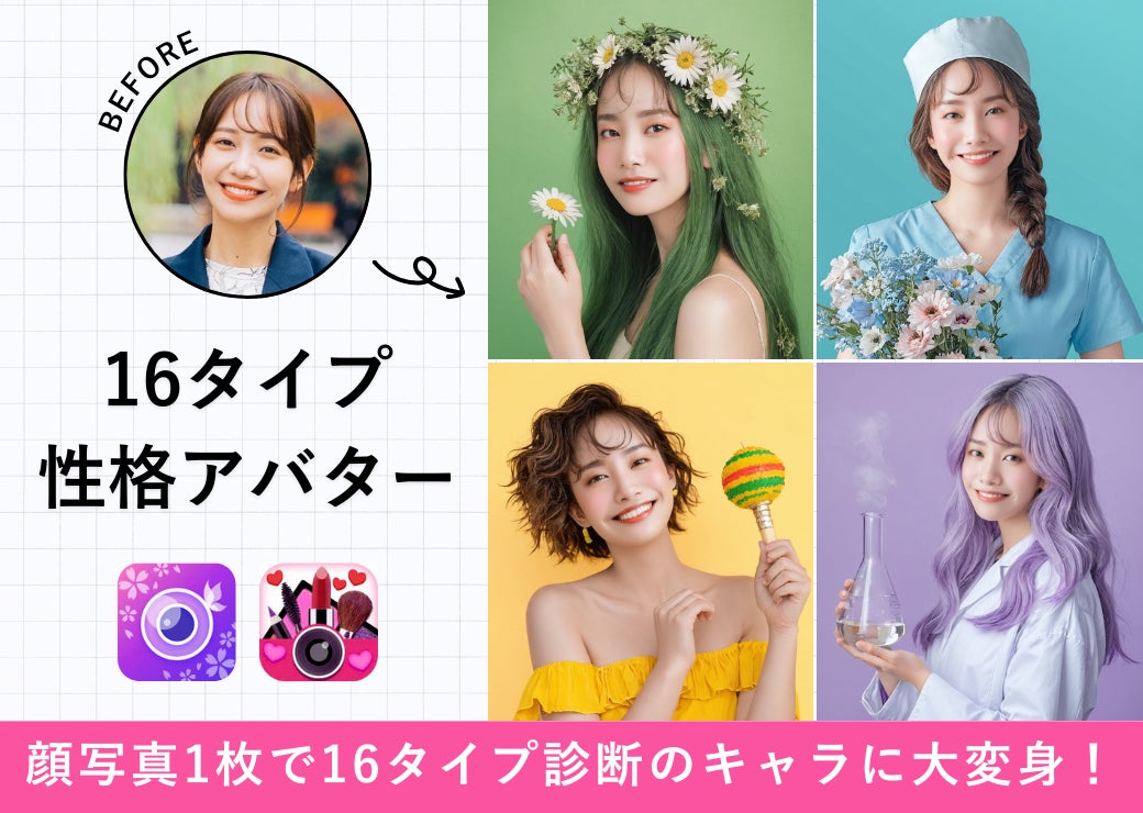 「あなたはどのタイプ?」顔写真1枚で16タイプ診断キャラに大変身!