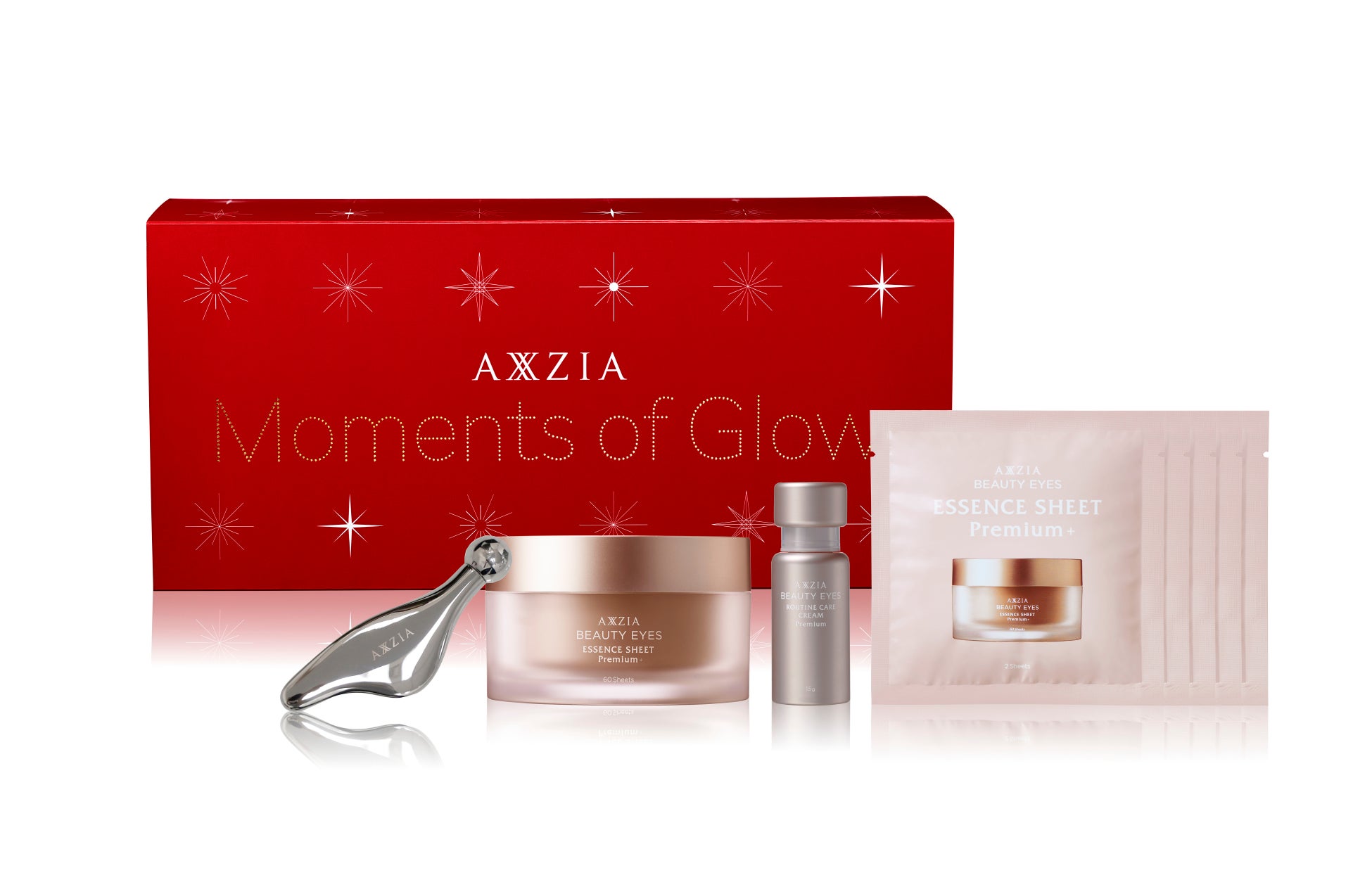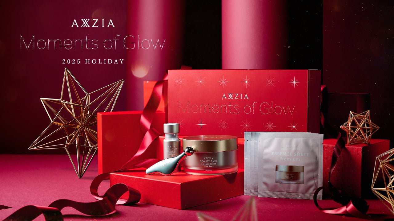 アクシージアの2025年ホリデーコレクションには、人気の目もと用シートマスクとジェル状マスクを中心に、「2025ホリデー目もとトータルケアセット」「2025ホリデージェルマスクスペシャルケアセット」の2種類をご用意しました。スペシャルなアイテムは、特別にデザインされた華やかなギフトボックスにおさめられ、大切な人への贈り物や、1年を頑張ったご自身へのご褒美にぴったりです。