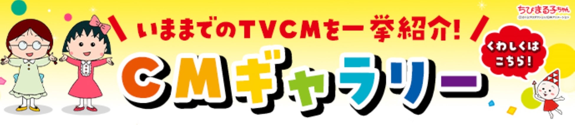 ちびまる子ちゃんとともにお届けしてきた14 年分のTV CM を紹介しています。