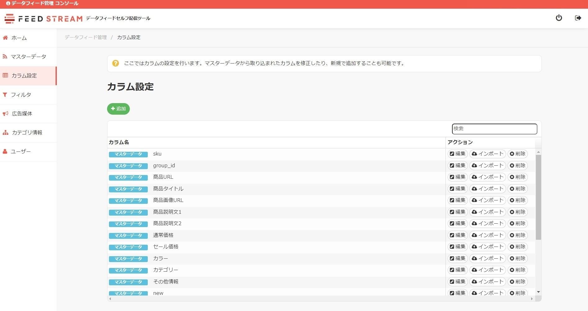 セルフプランで使用する管理画面のリニューアルを行いました。メニューやボタンの配置変更、ヘルプの記載などを追加し、データフィードの作成や加工、アップロードから管理までをより直感的に行っていただけるよう工夫した管理画面に生まれ変わりました。