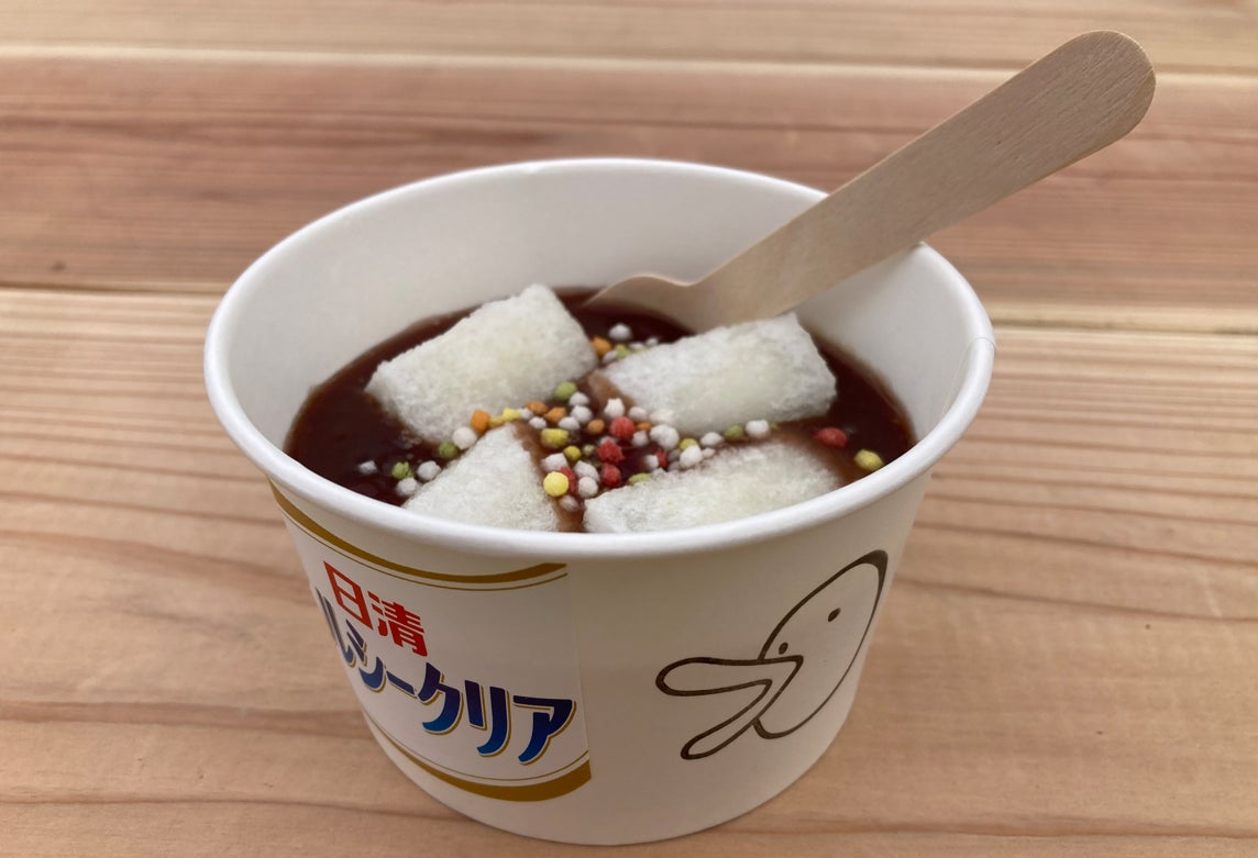 「日清ヘルシークリア」で揚げたお餅をいれた「ぜんざい」も大人気!