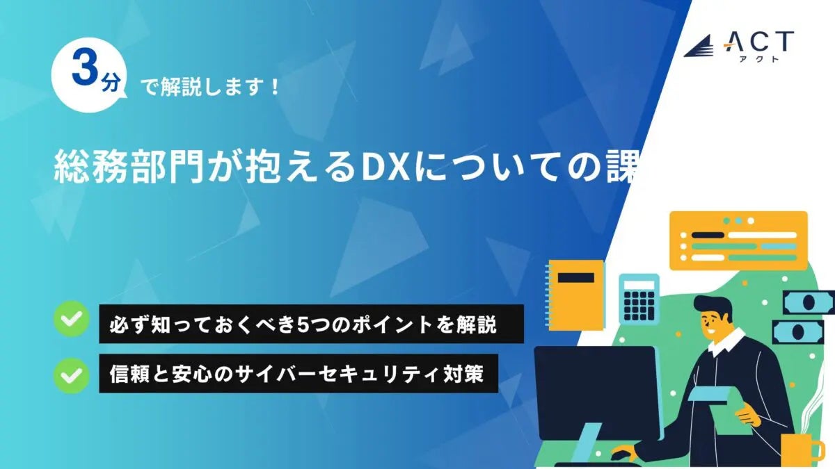 今年30周年を迎え、サイバーセキュリティ事業などを行う株式会社アクト(本社:東京都文京区、代表取締役CEO 小林 智彦 、以下 アクト)は【3分で解説!総務部門が抱えるDXについての課題とは?】のホワイトペーパーを公開しました。