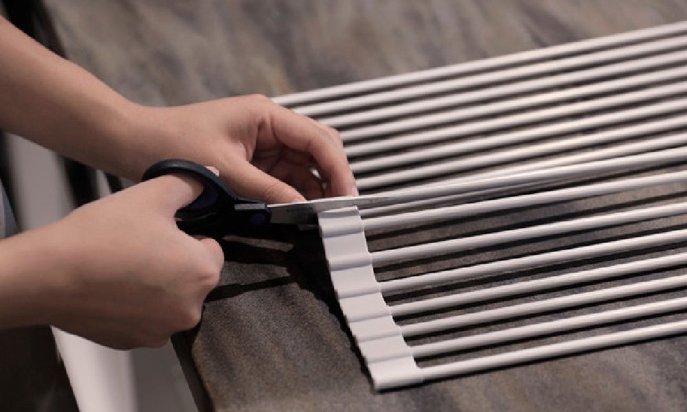 キッチンのスペースに合わせて、お好みの幅にカットすることができます。