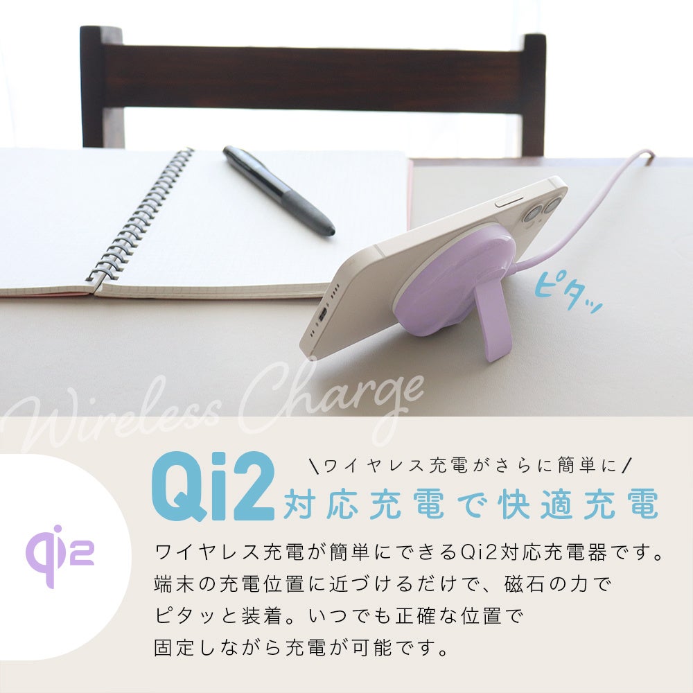 ワイヤレス充電がさらに簡単にできるQi2対応充電器です。