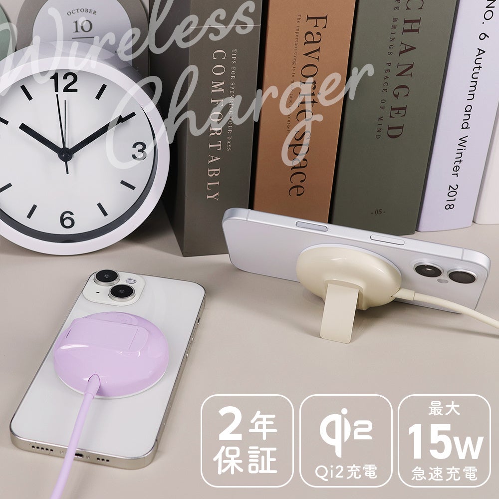 Qi2対応 マグネット式ワイヤレス充電器 スタンド付き(MOT-QI15W02) |